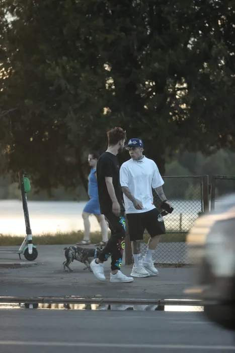 Lino Golden s-a întâlnit și cu un prieten, în timp ce-și plimba cățelul (Foto: CANCAN.RO)