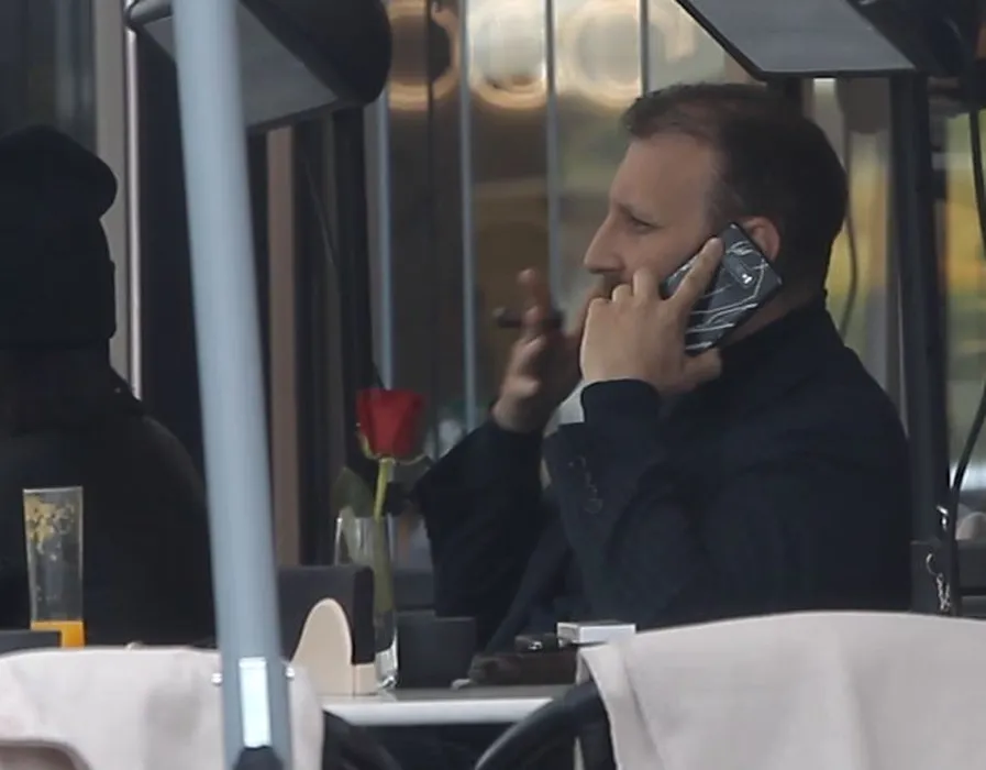 Ionuț Brîncoveanu trage din trabuc și vorbește la telefon