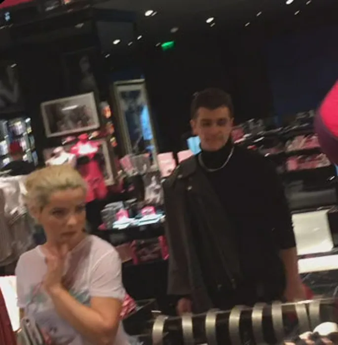 Anca Dinicu se uită la articolele din magazin