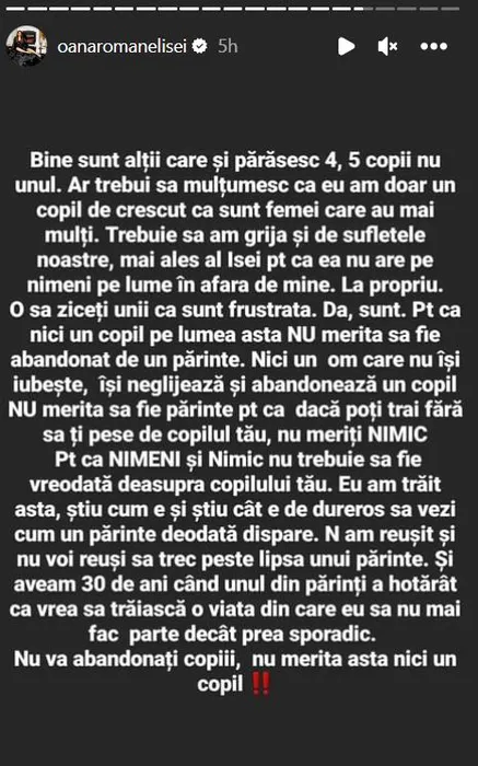 Mesajul scris de Oana Roman pe internet