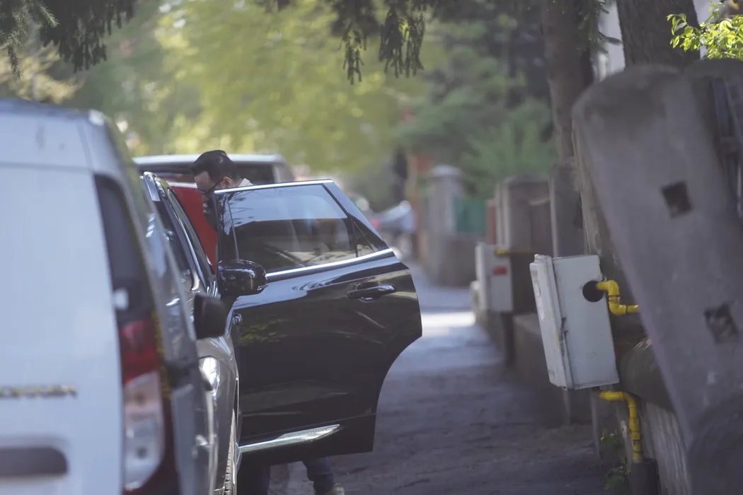 Cătălin Măruță ia ceva de pe bancheta din spate (Foto: CANCAN.RO)