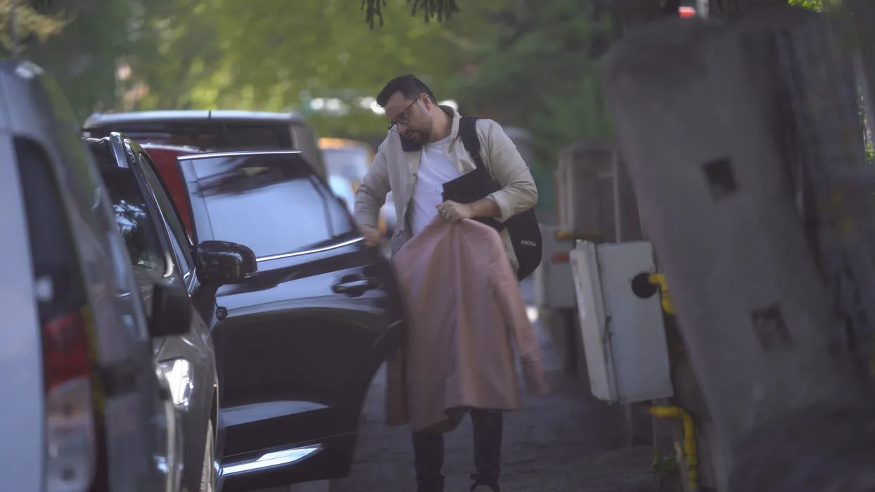 Cătălin Măruță își ia hainele din mașină, în timp ce vorbește la telefon (Foto: CANCAN.RO)