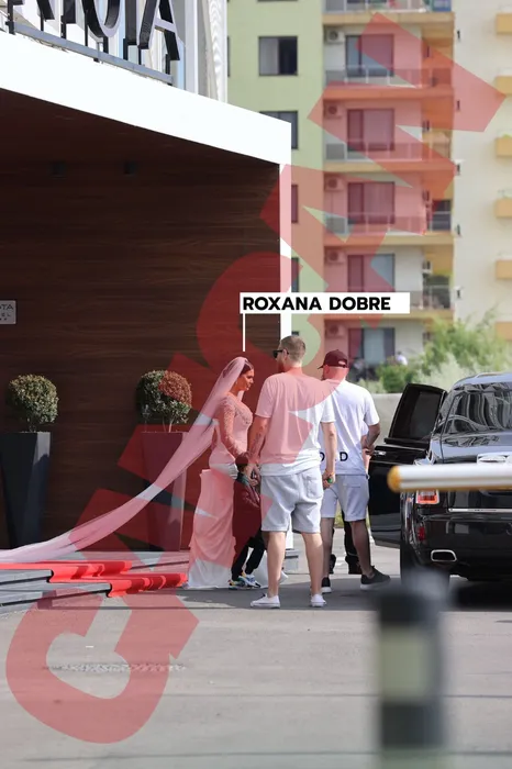 Apariție impecabilă a miresei lui Florin Salam! Roxana Dobre s-a dat jos din Rolls Royce, într-o rochie unică semnată de Cristina Săvulescu