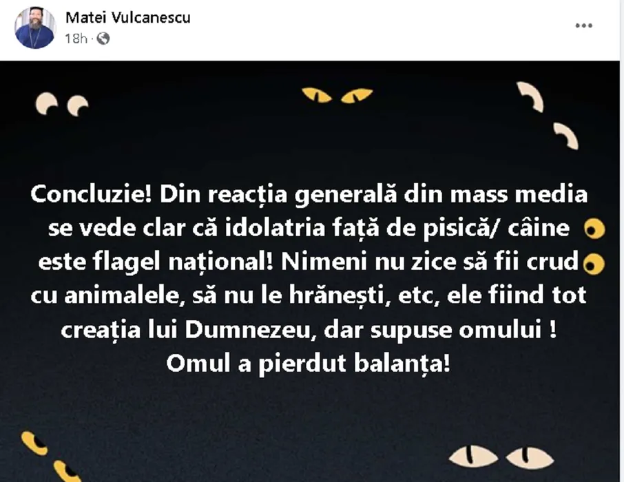 Mesaj controversat al unui preot român față de animalele de companie: ”Cine ține animale în casă… ”