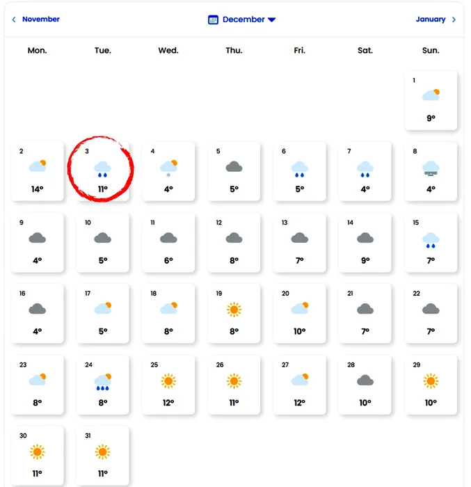 Meteo pentru luna decembrie 2024 - sursă foto: Easeweather