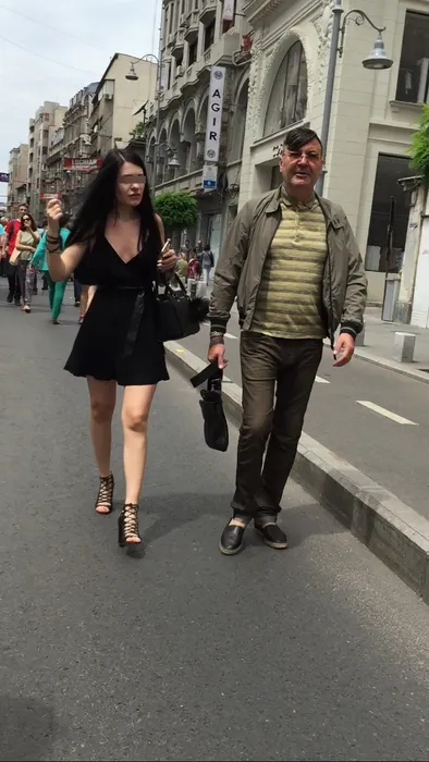 Dan Nicorescu pe Calea Victoriei, însoţit de o domnişoară atrăgătoare