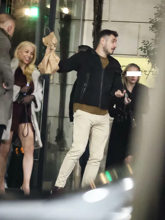 Alex Pițurcă iese din club cu șampania în mână și Lexi în dreapta sa