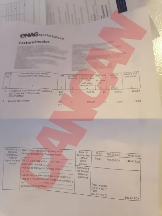 Frigiderul a fost livrat cu un an în urmă de milionar către Devoratoare