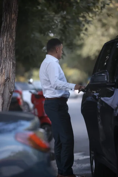 Eduard Novak, ministrul Sportului, urcă în mașina MTS-ului, parcată în apropierea restaurantului (Foto: CANCAN.RO)