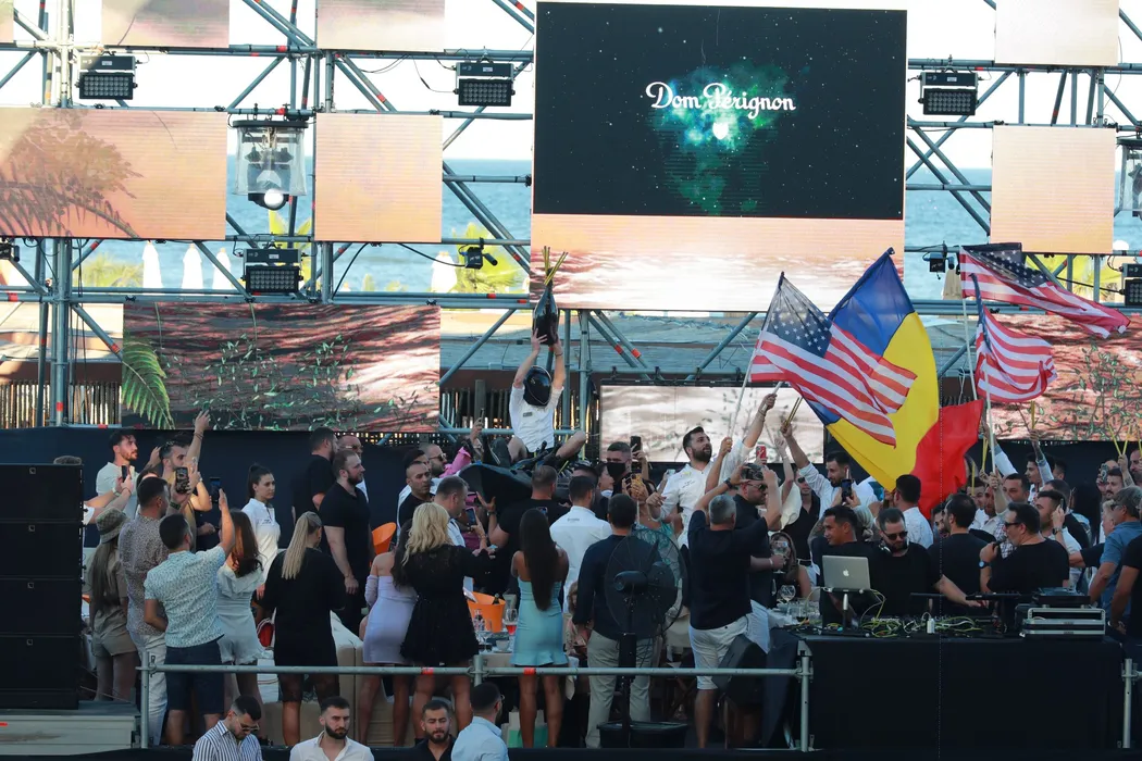 Șampania a venit cu barca, în zona Ultra VIP, unde se afla Mișu Pricopsitu