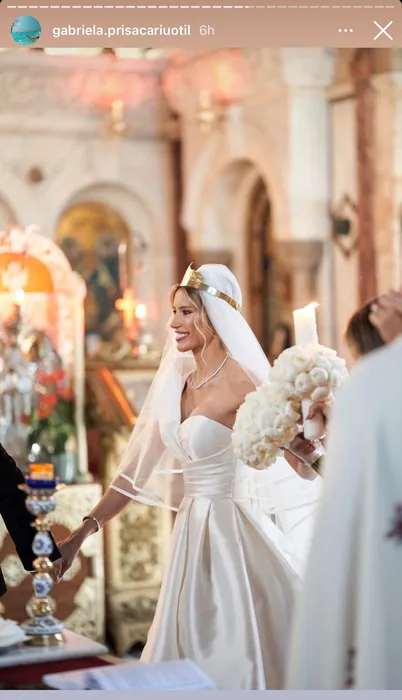 Gabriela Prisăcariu a îmbrăcat o rochie de mireasă de un alb impecabil