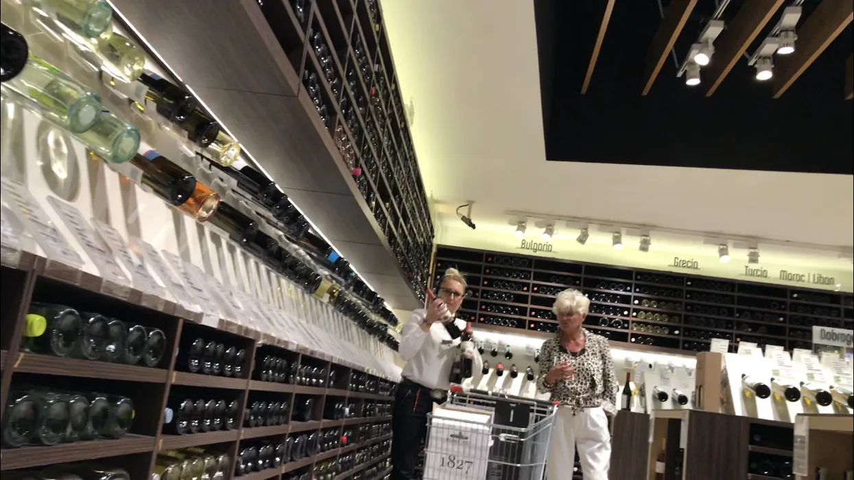 Monica Tatoiu a ”cocoșat” un cărucior de cumpărături cu o cisternă de vin!