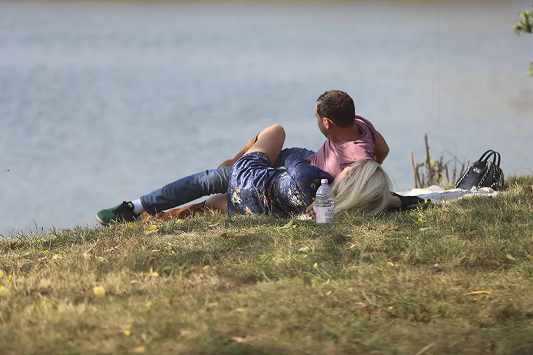 Scene fierbinți pe malul lacului, ziua în amiaza mare