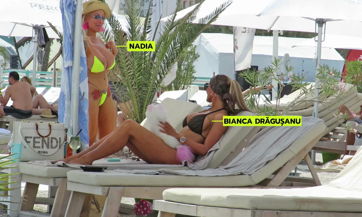 Valentina, din nou cu sfârcurile la vedere, de această dată pe litoral, în fața Biancăi Drăgușanu (Foto: CANCAN.RO)