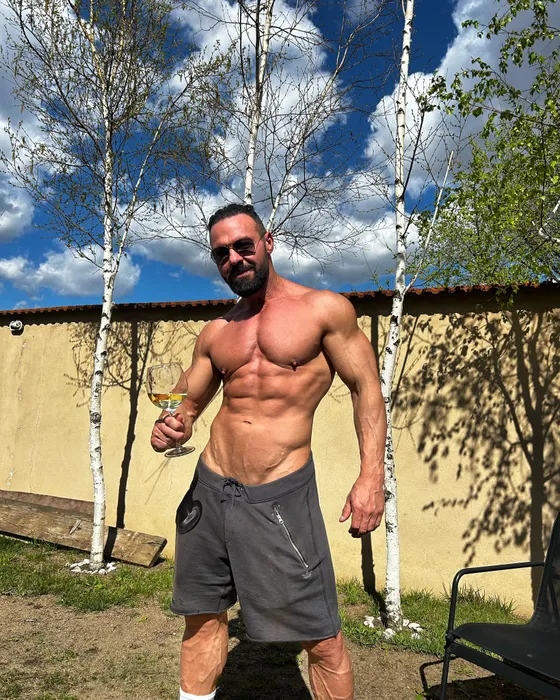Cornel Păsat în curtea vilei sale