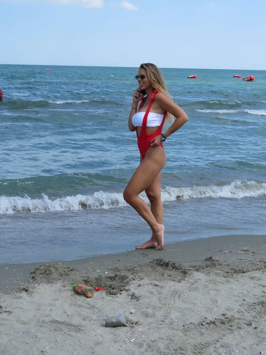 O ”arde” Baywatch! Roxana Nemeș, la malul mării, atrage ”rechinii”… Și-a pipăit poponețul, a făcut o piruetă și…
