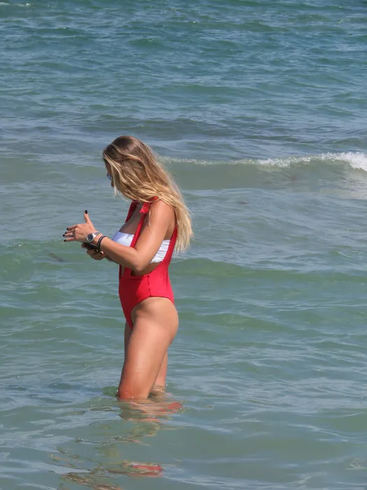 O ”arde” Baywatch! Roxana Nemeș, la malul mării, atrage ”rechinii”… Și-a pipăit poponețul, a făcut o piruetă și…