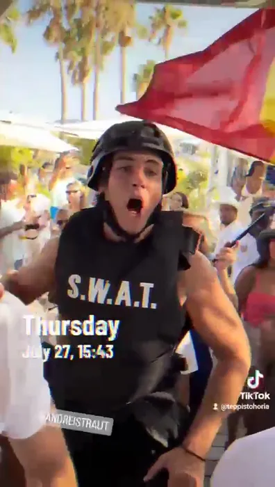 O româncă & brigada au rupt St. Tropez în două! Petrecere faraonică de 35.000 €, udată cu șampanie Cristal și Armand de Brignac! S-au deghizat în trupe S.W.A.T. și fețe bisericești