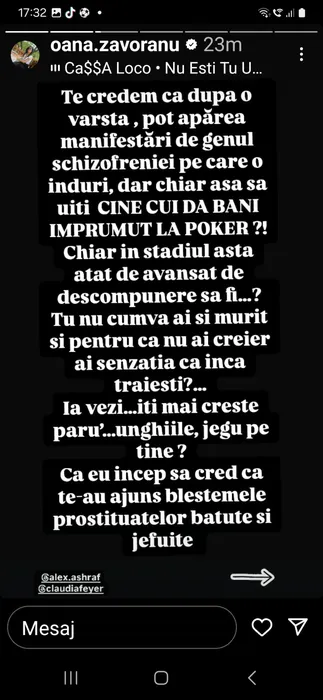 Oana Zăvoranu l-a încins grav pe Alex Bodi! Uluitor ce mesaj i-a trimis: ”Ai avut 2 neuroni, s-au luat la ceartă, au divorțat și…”