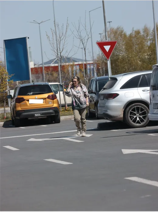 Gina Pistol a ajuns la Ikea și se îndreaptă spre intrare, cu telefonul la ureche (Foto: CANCAN.RO)