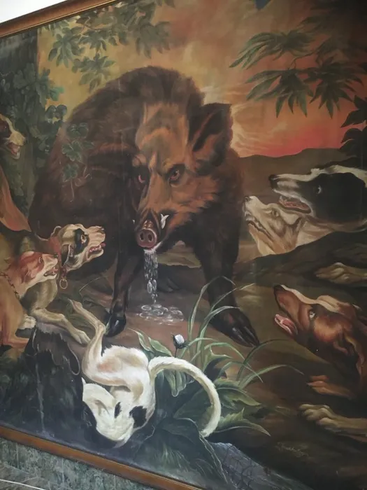 Mihai Dumitru Martalogu a pictat tabloul ”Vănătoare de mistreți”, care a fost expus la cabana de la Seaca