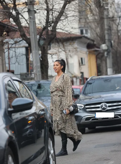 Raluca Pastramă se îndreaptă, veselă, către grădiniță (Foto: CANCAN.RO)