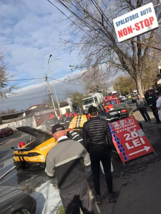 Lamborghini în flăcări (sursa foto - grup public Facebook)