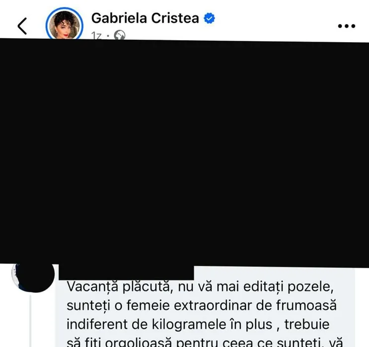 Gabriela Cristea, criticată pentru că își editează pozele. Sursa foto: Facebook / Gabriela Cristea