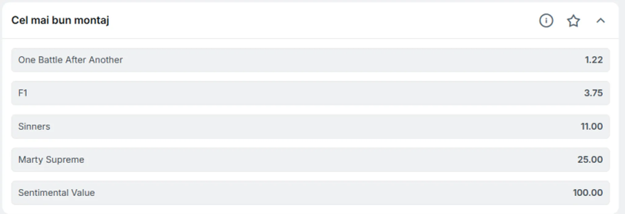 Premiile Oscar 2026: cotele la casele de pariuri. Sursa foto: Superbet