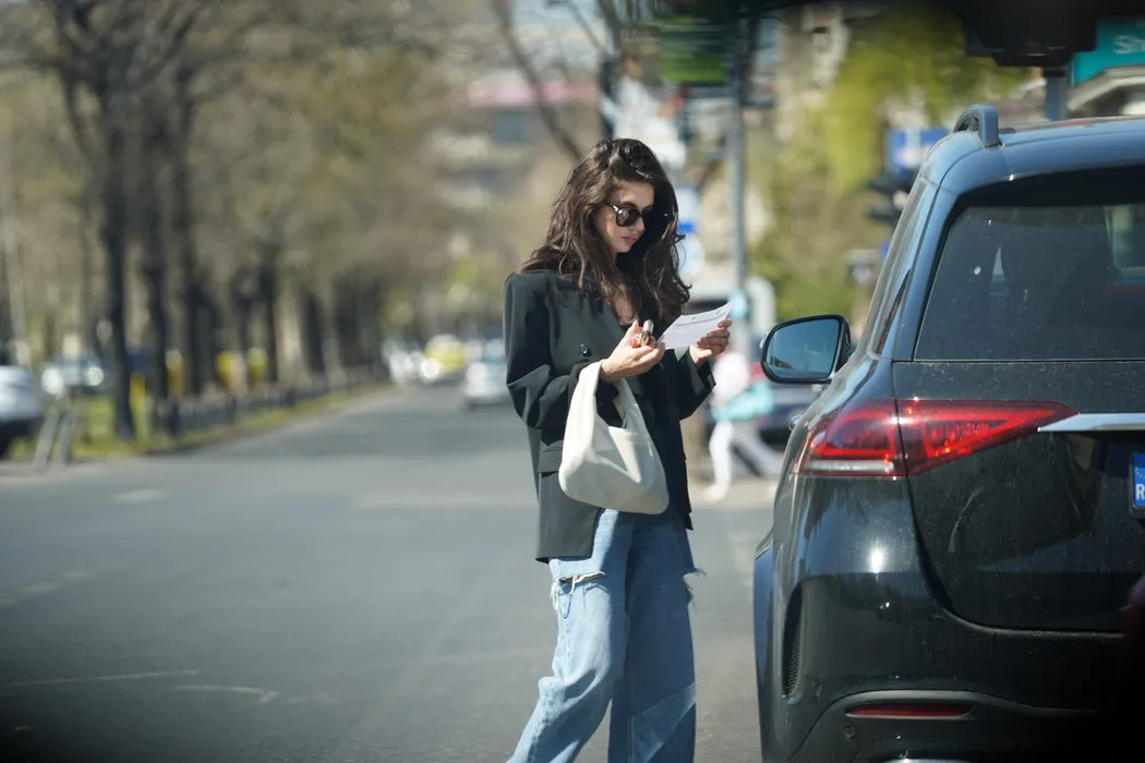 Cristina Ich a luat fluturașul de pe parbriz, imediat ce a ajuns în Dorobanți (Foto: CANCAN.RO)