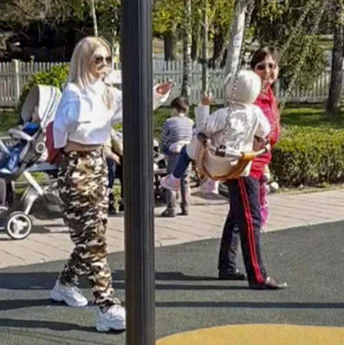 Fără a face mișcări exagerate, Andreea s-a distrat în parc alături de fiica ei