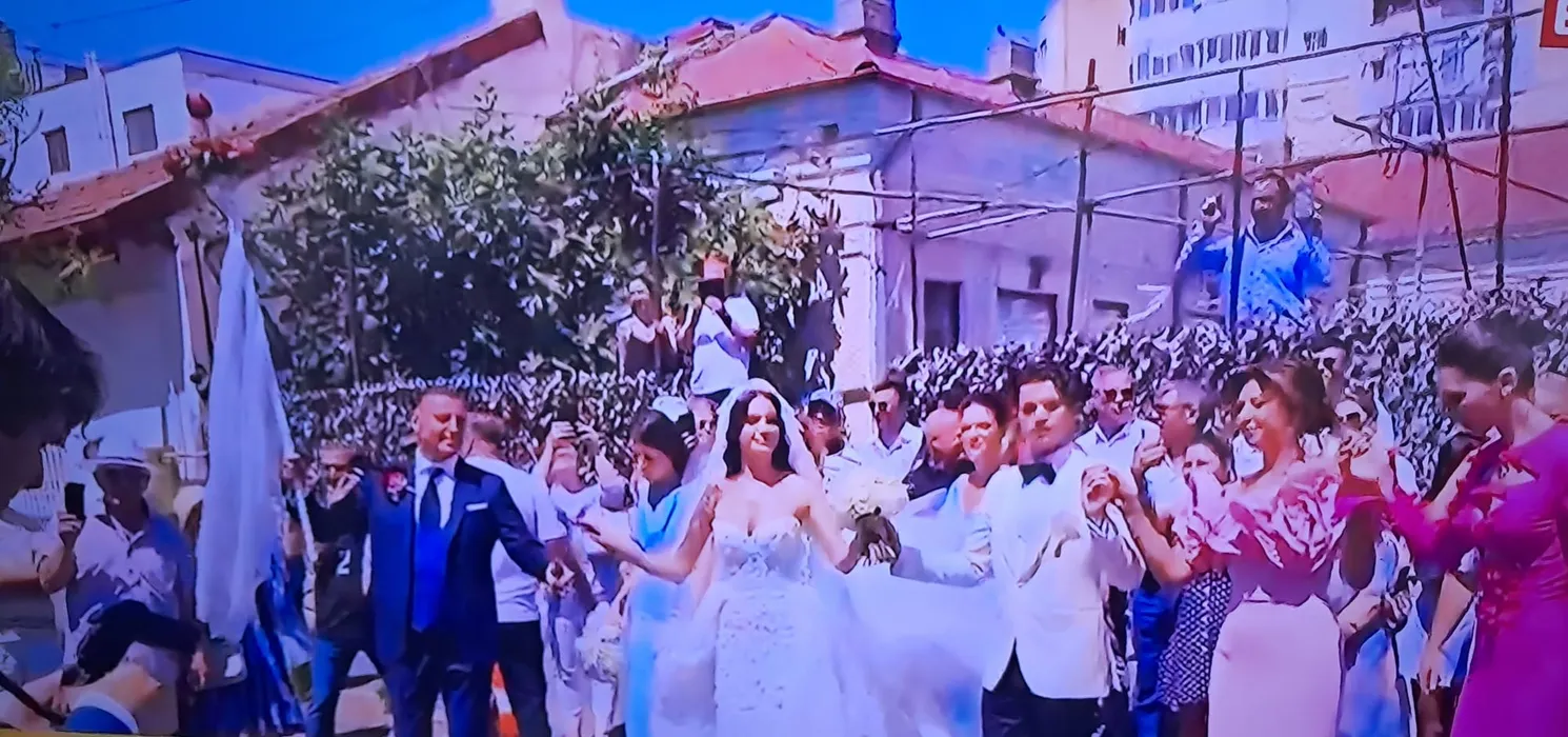 Primele imagini de la nunta lui Ianis Hagi cu Elena Tănase! Mirii au ieșit în stradă și au făcut o horă machedonească