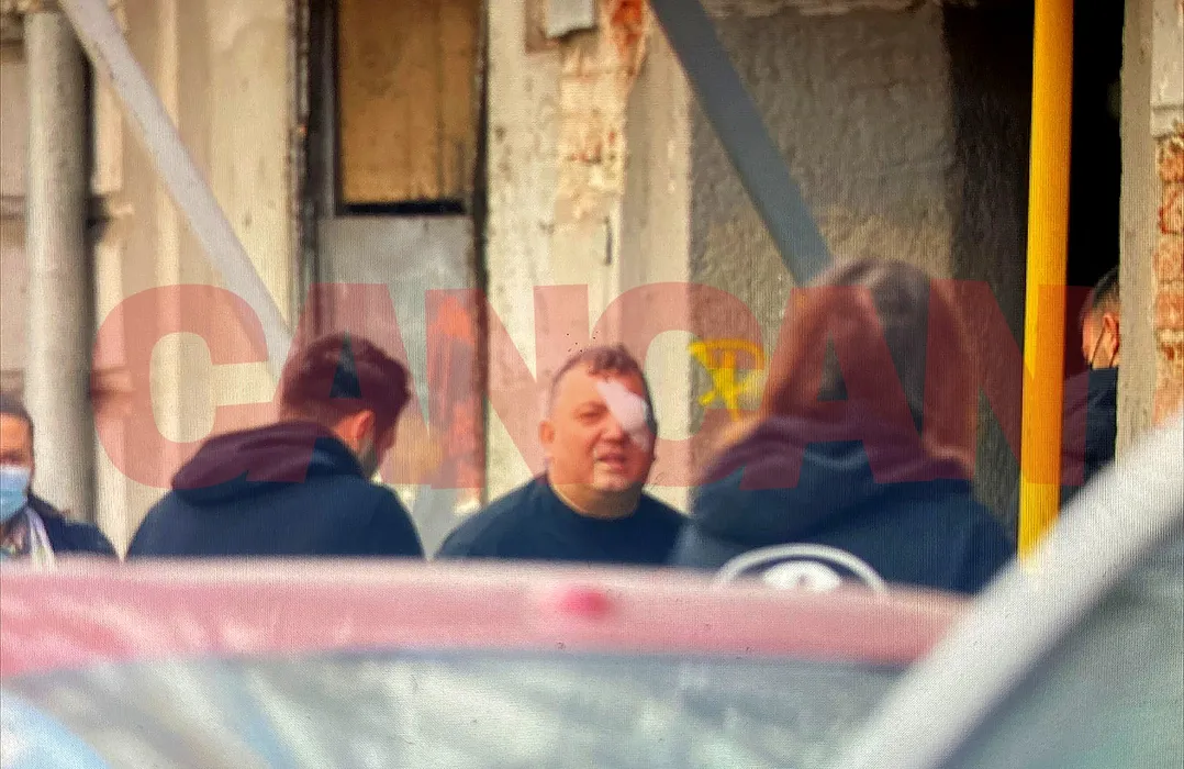 Nuredin Beinur, bandajat la ochi după ce a fost împușcat. Tocmai a ieșit din spital, la ora 10:35 (Foto: CANCAN.RO)