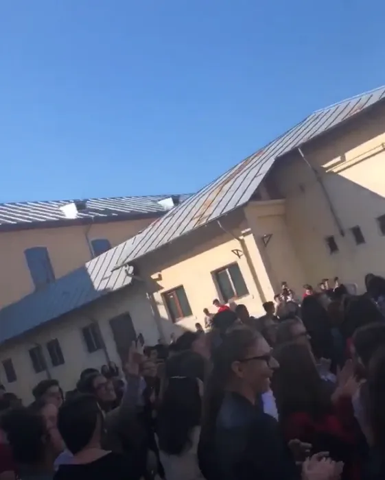 VIDEO. Protest inedit la Târgoviște: Elevii cer să fie reangajat paznicul care îi lăsa să iasă din liceu în timpul orelor