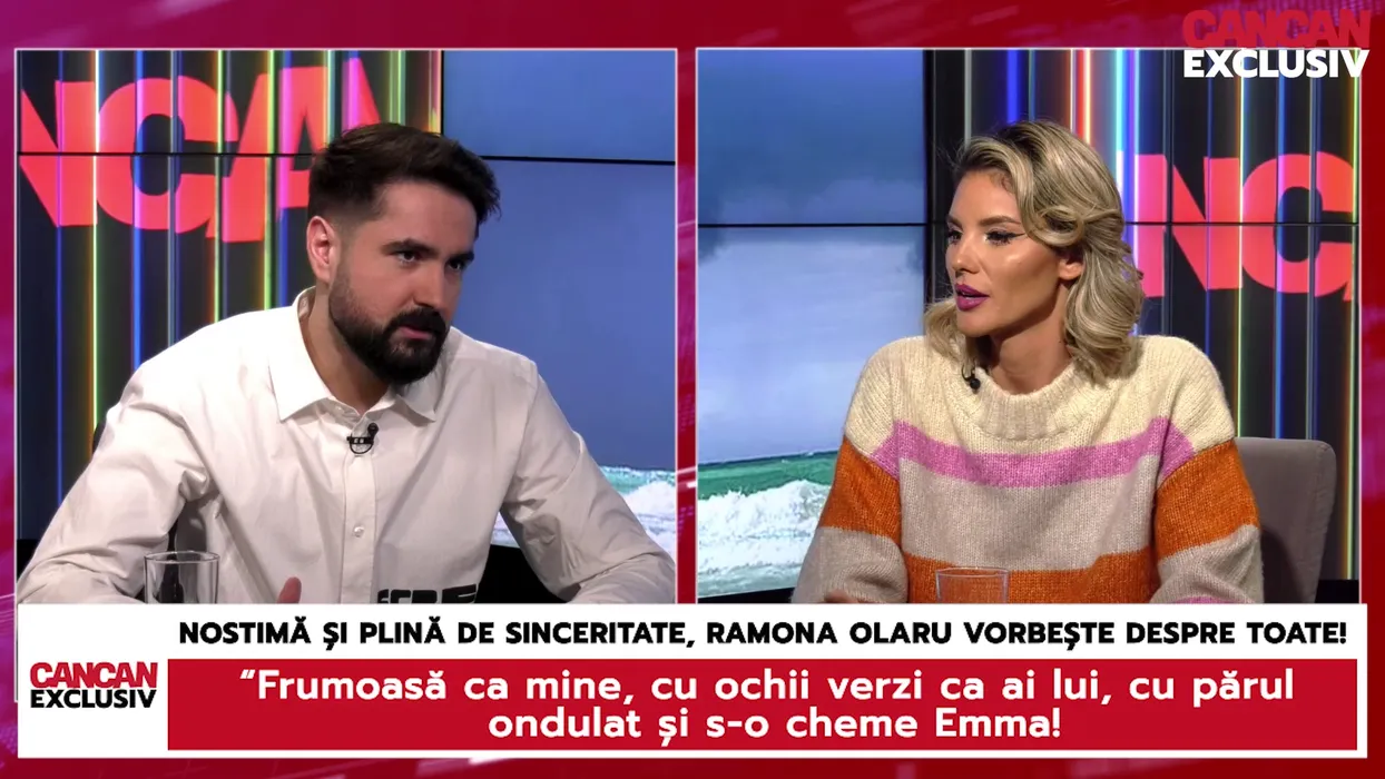 Ramona Olaru: "Și acum își dorește o fată. Avem aceeași proiecție - frumoasă ca mine, cu ochii verzi ca ai lui, înalți suntem amândoi, și cu părul ondulat. Și s-o cheme Emma! Înaltă, frumoasă și devreme acasă, pentru că o să aibă educația de la mine, nu de la el!" (Foto: captură video)