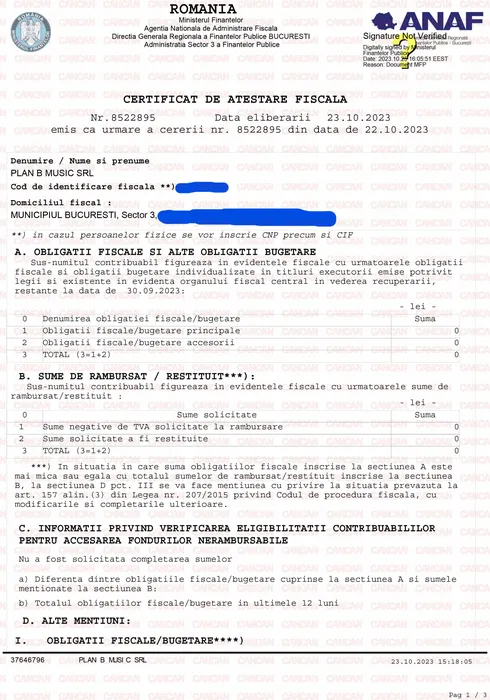 Documentele pe care Cătălin Măruță le-a prezentat, pentru a arăta că nu are datorii la stat