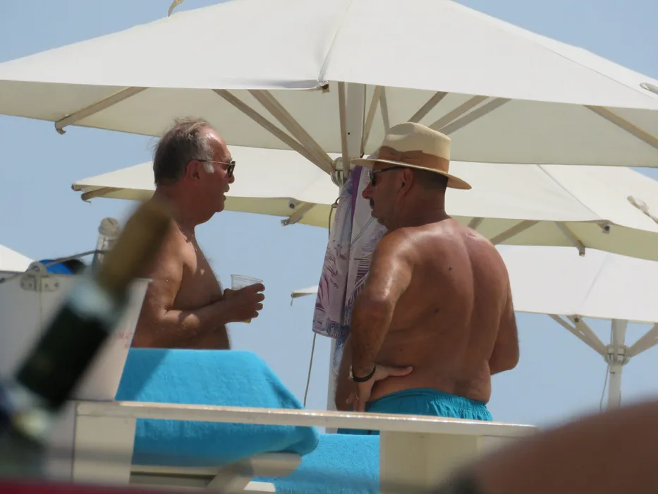 Sub umbrelă, Raul Doicescu și Marian Alecu, doi afaceriști care "pun țara la cale" pe plajă, la Mamaia