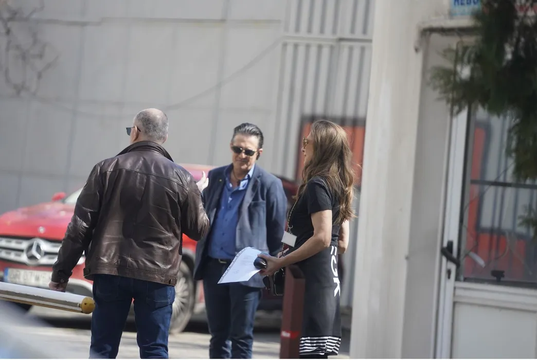 Romanița Iovan a ajuns la sediul firmei sale, unde s-a întâlnit cu doi prieteni (Foto: CANCAN.RO)
