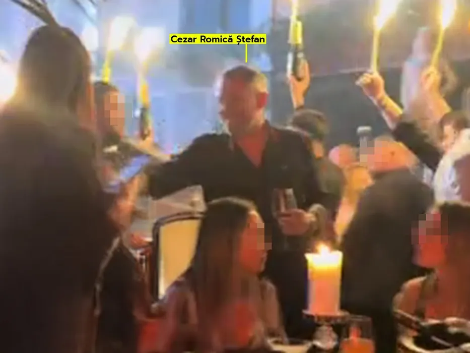 Romică a bulversat clubul cu un ”vagon” de șampanii și artificii ca în Dubai! Imaginile luxului debordant cu nababul care fabrică miliarde din contracte cu Armata