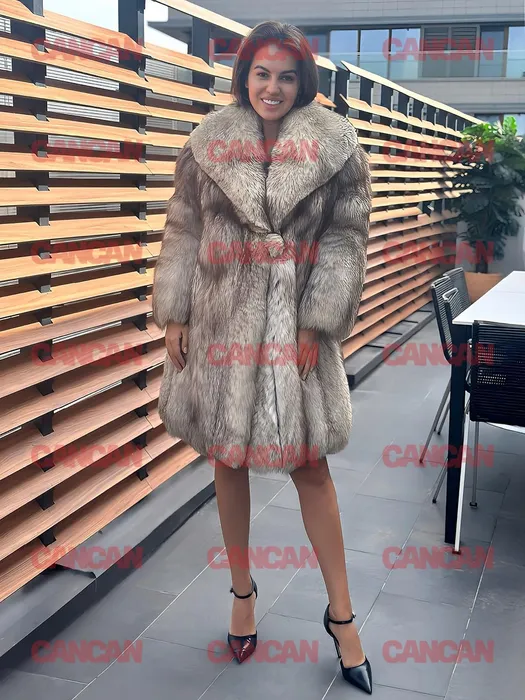 Romina Gingașu, purtând noua sa blană de vulpe.