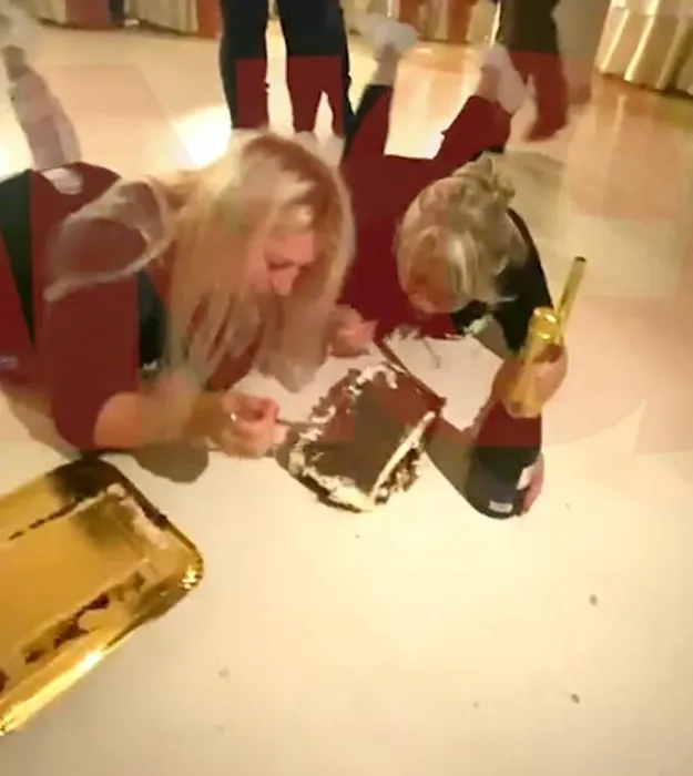 Râzi cu lacrimi! Tortul s-a făcut praf, dar sărbătoritele au găsit soluția! S-au întins pe burtă și au mâncat cu lingurița de pe jos