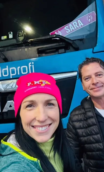 Sara, o șoferiță de TIR de 36 de ani, a devenit eroină pe autostradă./ sursă foto: instagram