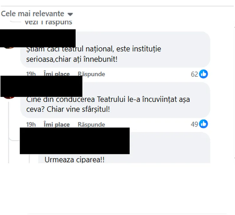 Comentariile la postarea despre piesa de teatru/ Sursa foto: Facebook