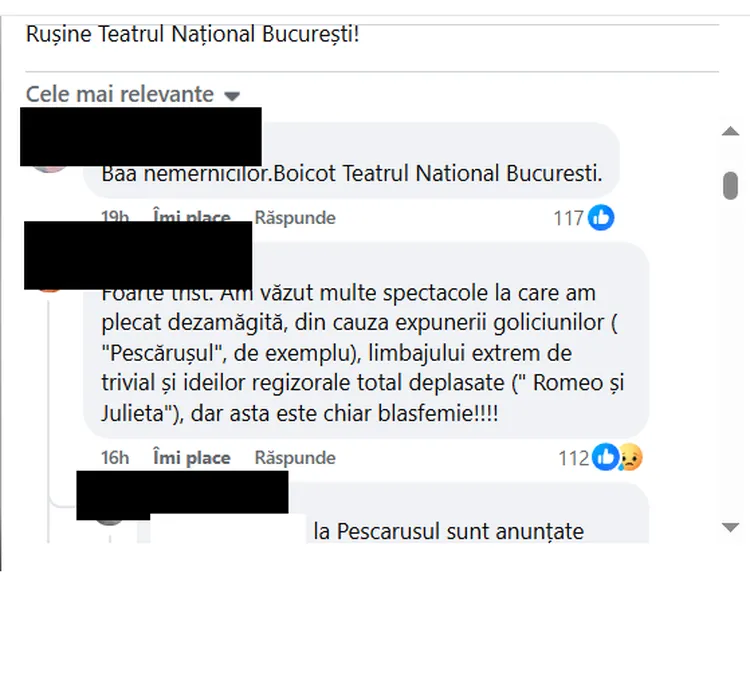 Comentariile la postarea despre piesa de teatru/ Sursa foto: Facebook