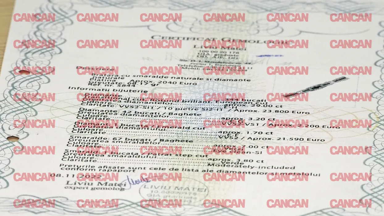 Certificatul gemologic al brățării deținute de Cristina Preda (SURSA FOTO: CANCAN.RO)