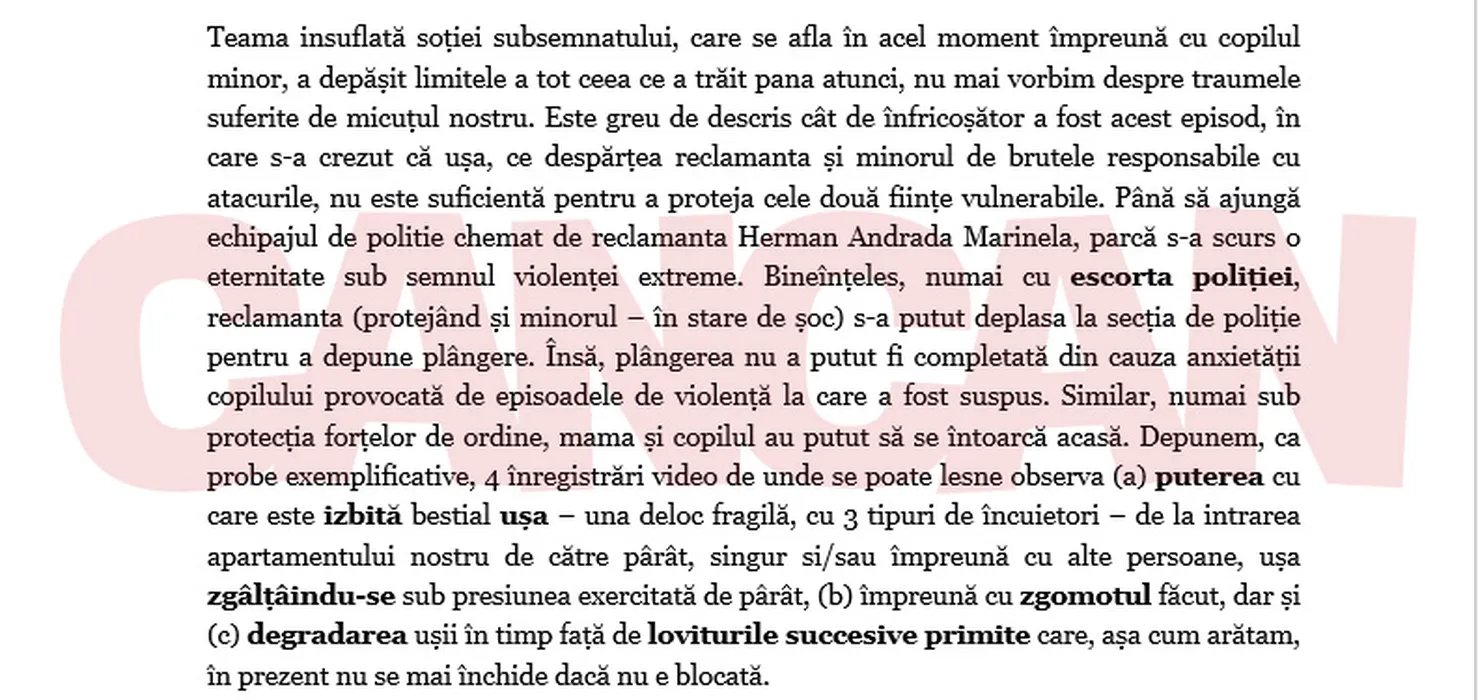 Pasaj din plângerile făcute de Sabin și Andrada Herman, după ce ar fi fost terorizați (Foto: CANCAN.RO)