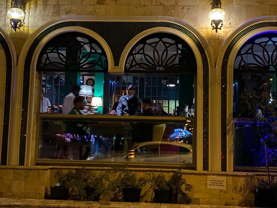 Oamenii stau liniștiți la masă în restaurantul Mandaloun din Capitală, deși ar trebui ca locația să fie închisă