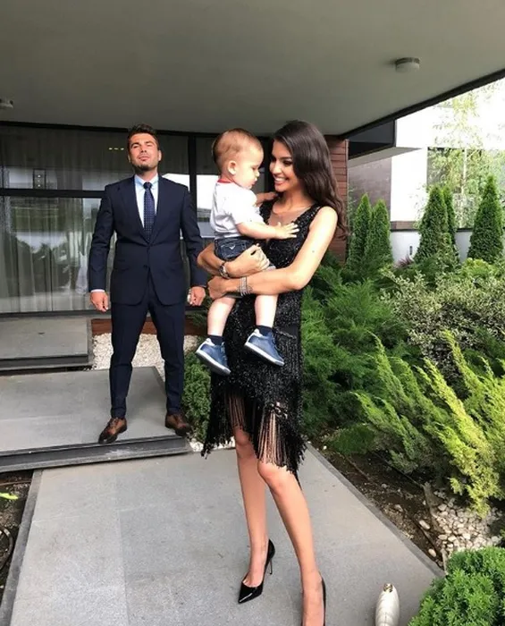 Adrian și Sandra Mutu, împreună cu băiețelul lor