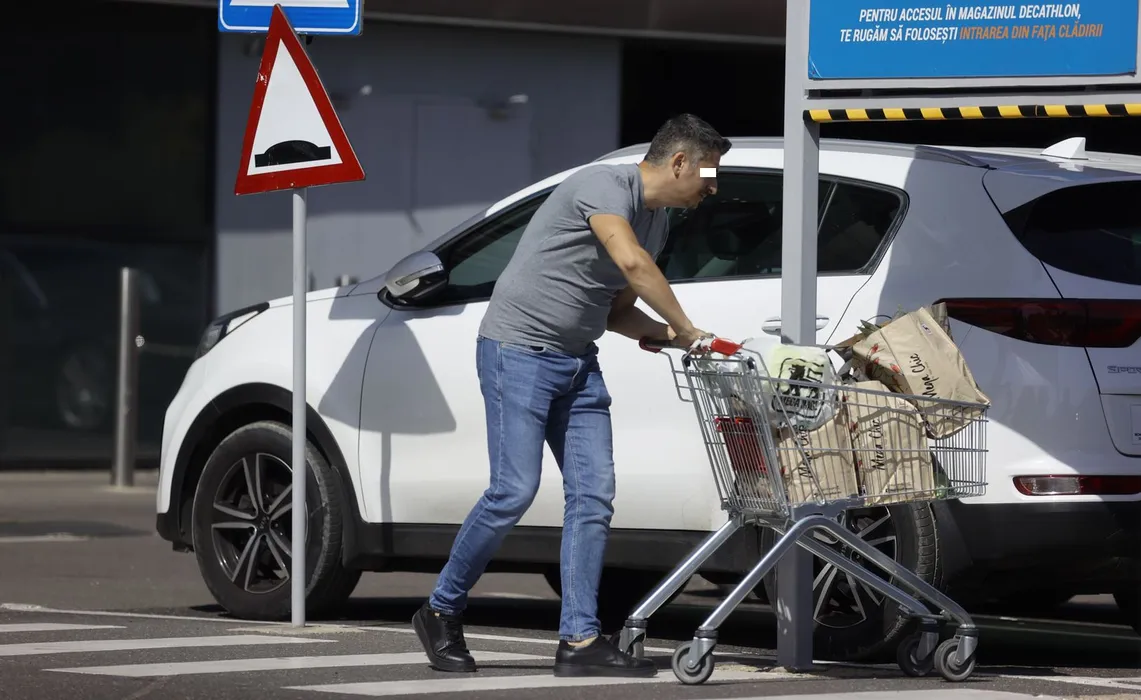 Șoferul Simonei Halep a ajuns la mașină și va descărca, în portbagaj, cumpărăturile (Foto: CANCAN.RO)