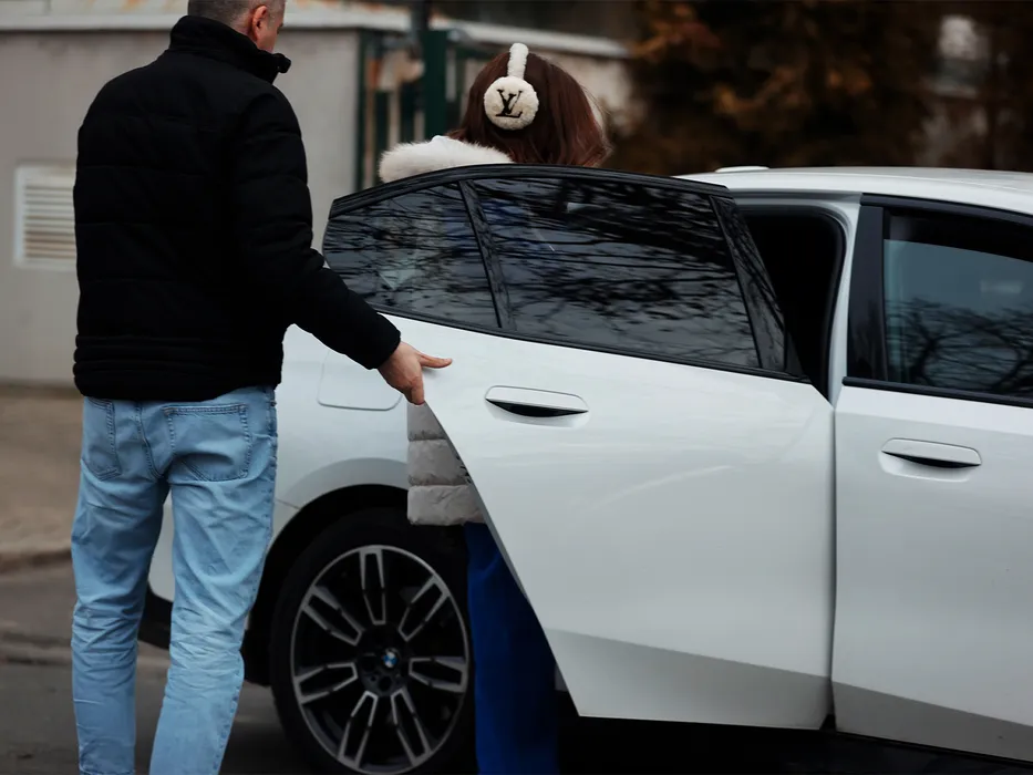 Șoferul îi deschide ușa